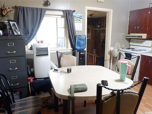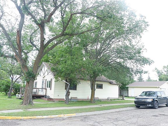 Located in the Town of Assiniboia. Come check out this great home on a corner lot. Newer double detached garage! The home has an eat-in kitchen, living room, 2 bedrooms and 4-piece bath. The basement is partially developed with a 3-piece bath and lots of storage rooms. The furnace has been upgraded to a high efficient natural gas model recently. There is extra parking in the back with a concrete parking pad. This property is currently rented. Good starter home or investment property. Come look at it today!