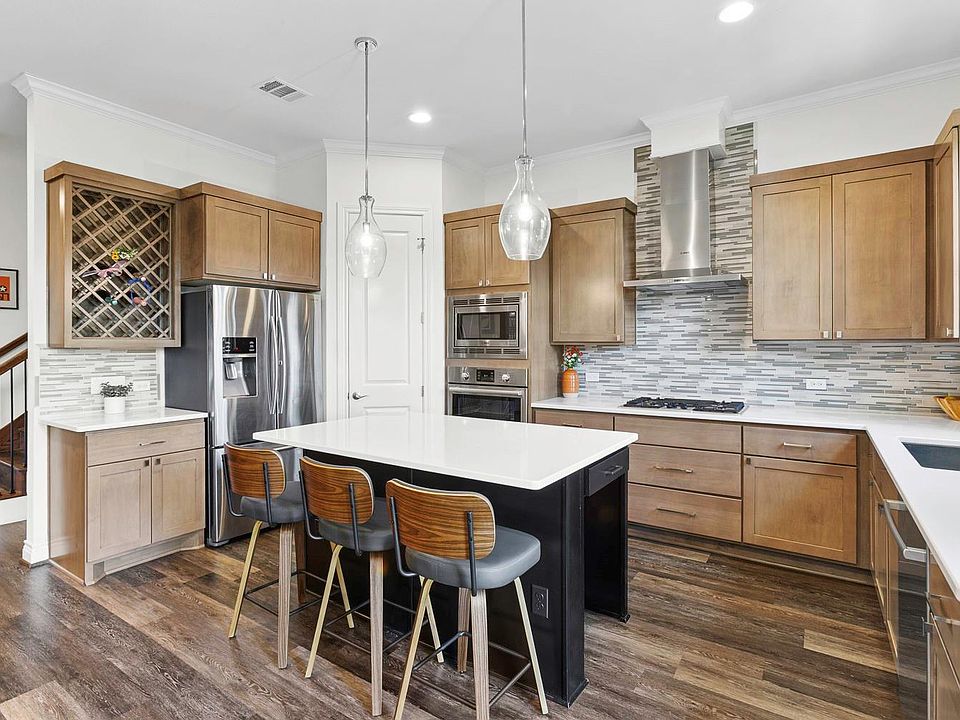 Tucked in a prime Georgetown location, this stylish townhome is packed with upgrades that make everyday living feel like a luxury retreat. Over $30K in renovations have transformed the space into something truly special — from a larger kitchen island with a built-in wine fridge, coffee bar, and wine rack, to thoughtful touches like a dog bowl toe-kick drawer and walk-in pantry. The upstairs bedrooms feature no carpet, and the primary suite boasts upgraded bathroom with a large walk in shower, new mirrors, and granite countertops. Entertaining is effortless with a third story wet bar (with full-size fridge that conveys), second-story patio with gas line, and a rooftop oasis complete with fire pit, dual gas lines, and projector screen for unforgettable movie nights under the stars. Eco-friendly features like solar panels, an electric car charger, and a water softener/dechlorinator add modern convenience. When you’re ready to explore, you’ll love being just minutes from Downtown Georgetown’s historic square, with its restaurants, live music, and boutique shopping. Outdoor lovers can head to Blue Hole Park, San Gabriel Park, or hike the trails along the river. Everyday essentials are close by too — with H-E-B, Target, a movie theater, orange theory, restaurants in Wolf Ranch Town Center all just a quick walk away. This isn’t just a home — it’s a lifestyle waiting to be enjoyed.
