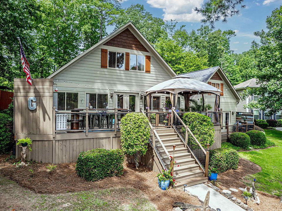 THIS IS IT!! I know you probably see that statement on lots of listings but..... it's TRUE this time! If you are afraid of falling in love with the best house on Jackson Lake, then don't go see this one! This DEEDED house is so perfect. It is located on the Tussahaw side of Jackson Lake, up in a large deep cove so you can float at your dock and enjoy your cove with your neighbors and not get rocked by waves from the big water traffic. Caney Fork Creek runs behind the house (making the back side of the house "waterfront" as well ) and then feeds the cove so the water is fresh and clean... one of the best coves on the lake! There is a covered stationary dock with a boat lift and plenty of room for sunning on the dock! So... I know the lake is what everyone thinks is the best part, but.... let's talk about that perfect house!! You get two houses in this deal! The main house has beautiful REAL wood floors throughout, a gorgeous kitchen with beautiful butcher block countertops, tiled backsplash, and nice island. A lovely den area with built-in bookshelves leads to a guest room and full bath. The sunroom extends the entire length of the house with nothing but windows for that absolute gorgeous view of the lake!! Head up the stairs to see the massive primary bedroom with ensuite that has a soaking tub, tiled separate shower, double-sink vanity, and walk-in closet. Be careful when approaching the window up there though... that view WILL take your breath away! Imagine sitting outside on the lakeside deck, having a morning cup of coffee, listening to the serene sounds of lake life, the water as smooth as glass, the orange sky from the sun just coming up, a little light fog rising up off the cove..absolute heaven!! On the weekends, have all the family and friends over for cookouts that you can prepare right outside on the patio in your outdoor kitchen/grill area so you don't miss one minute of the fun. Playing cornhole in the yard, splashing in the lake, enjoying cool beverages of your choice. And if those guests want to stay the night, just walk them right down the patio stairs to the Bunk House!! That's right! A completely separate house that you only have to heat and cool when you have company over! The most perfect built-in bunk beds (and private full bath) that you can imagine!! And I am not done yet! You thought there couldn't possibly be anymore to this place, didn't you? Oh, but you are wrong. On the driveway side of the bunk house is a storage room (OK... so we call it the beer room!) It has a fridge and cabinets for extra storage! Then, go up the outside stairs of the bunk house and the entire attic of that house is storage! Plenty of room for all the storage boxes you can bring. You will also find on the other side of the driveway, (that's right.. don't forget, you will own both sides of the road!) a workshop/storage building and plenty of extra parking for your guests. This house is just so perfect! You don't want to miss this one. Getting on Jackson Lake is getting tougher by the day so hurry up and get this place while you still can. Call your agent (OR ME!) and get that showing scheduled today! House is occupied. Please do not approach house without an appointment. Pets on premises also.