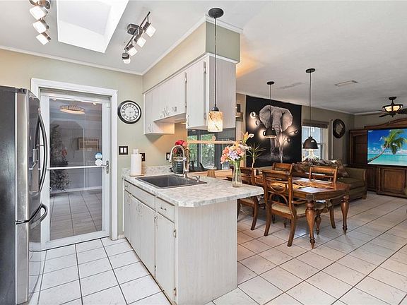 This 4-bedroom, 2-bath home offers 1,983 sq. ft. of living space with an open layout connecting the family room, dining, and kitchen areas. The kitchen features a skylight and a peninsula that opens seamlessly to the family room, while a Florida room connects directly from the kitchen and leads out to the backyard deck with a 12x12 hardtop gazebo that conveys. Both bathrooms also have skylights, with the primary suite offering dual sinks, a large walk-in shower with opposing shower heads, and a spacious storage area. Additional highlights include a screened-in front porch, smart door lock and handle, and a 3rd Gen Google Nest thermostat. Major updates include a new roof with foam insulation throughout the attic, outdoor HVAC and indoor air handling units, outdoor circuit breaker box, double-pane windows, roll-down hurricane shutters, and a sprinkler system. The home is also equipped with a whole-home water filtration system and a reverse osmosis system above the refrigerator, both of which convey. While a refrigerator will be included, the LG refrigerator currently in the kitchen does not convey. The home is wired for modern living with Fiber Optic internet up to 5GB, Cat8 ethernet connections throughout, and a security system with cameras (doorbell excluded). The piano can convey if desired. Conveniently located near restaurants, shopping, nature preserves, and major highways, with Downtown Orlando just a short drive away, this home is move-in ready and waiting for its next owner.