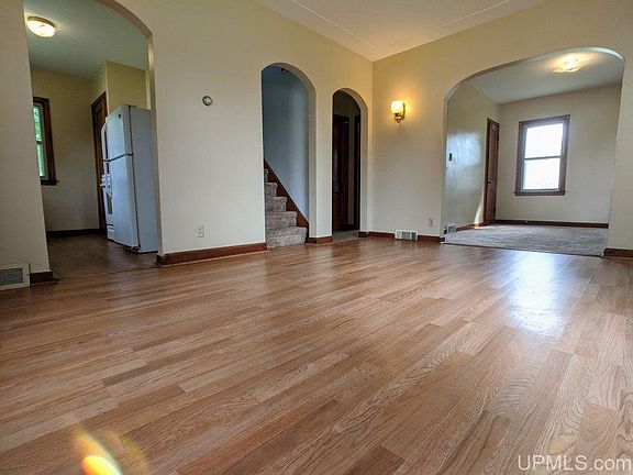 Charming, well maintained 3 bedroom home with hardwood and laminate floors that glow, lush carpets for warmth and comfort and lots of windows letting in the light. The main floor has a bedroom and bathroom, an efficient kitchen and dining room as well as nice sized carpeted living room. Up the carpeted stairs you'll find two more bedrooms with attractive dormer window bump outs adding character and additional light in from the outside. The clean poured basement houses a high efficiency furnace and laundry area. Many updates have been done to this home including new high efficiency low E windows upstairs along with fresh new paint in each room. Located within walking distance of downtown Caspian. Call to see this house today...in person or virtually!