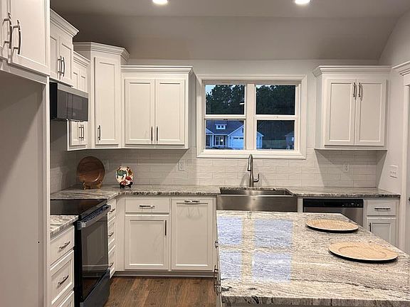 Open-concept layoutWood flooringTile backsplashGranite countertopsCozy carpeted bedroomsCovered back porch