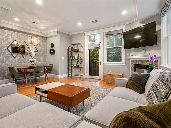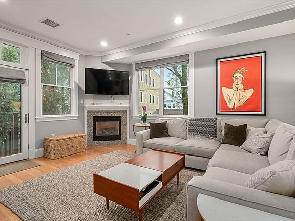 Welcome to this elegant 3-bedroom, 2.5-bath home in the heart of Somerville. This sophisticated home with central air boasts a meticulously-designed living space, offering a seamless blend of modern comfort and timeless charm. Enter into a gracious foyer leading to a thoughtfully designed interior, adorned with wood floors and bathed in natural light. The living room is complemented by a gas fireplace and dining nook, and flows seamlessly into a well-appointed kitchen. Upstairs are two spacious bedrooms, full-bath, and full-size laundry. The top-floor primary features cathedral ceilings, sliding glass doors with a Juliet balcony, a walk-in closet, and en-suite bathroom. Enjoy the luxury of private outdoor space and access to common outdoor areas. Includes two-car garage parking with heated driveway and private storage. With its desirable location near Harvard Yard, Union Square, and Inman Square, this residence presents a rare blend of warmth and accessibility.