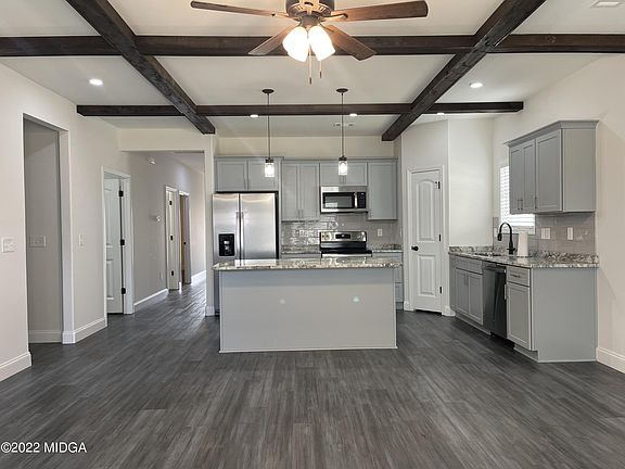 Just like brand new, but better.... Built in 2021, wonderfully maintained and offering refrigerator, washer and dryer! This brick front 3 bedroom 2 bath home offers a charming and thoughtful layout, tastefully designed in neutral gray and white tones, granite countertops, stainless steel appliances and LVP flooring throughout the home. Abundant sunlight during the day, this home is Cheery & Bright and in the evenings is comfy and moody with electric fireplace and exposed wood beams. Front porch and back patio. Future plans for walkable trails in subdivision perfect for leisure stroll, run or bike ride. Ideal location with quick commute to interstate, easy access to shops, restaurants and entertainment and convenient to hospitals and Robins Air Force Base. Call today for more information or to schedule a showing!