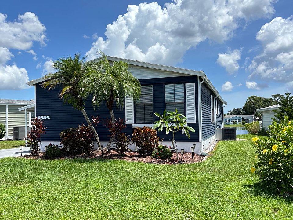 It's All About The View!! Enjoy resort-style 55+ active adult living in Heron Cay of Vero Beach, offering amazing amenities including a clubhouse with a heated pool, water aerobics, fitness center, library, card games, bingo, line-dancing, tennis, pickleball, shuffleboard, bocce, billiards, putting green, and much more. Enter the home through a side screened-enclosed patio (15 x 12) to a 2 bedroom, 2 bath entertainment style home, with lots of natural light, offering an open concept design with brand new vinyl plank waterproof flooring thru-out ($22,000); a completely remodeled kitchen ($50,000) with new waterfall island quartz countertops, stainless steel appliances, soft close wood cabinets with 2 lazy Susan's, glass backsplash, pantry, and more. The separate dining area has upper and lower built-in cabinetry & backsplash. The living room extends the width of the home and offers a knotty pine tongue-in-groove decorative wall, lots of windows, and sliders leading to the covered enclosed lanai, which is 10 x 25 feet and overlooks the pond. What a great place for coffee or an evening cocktail. The large, roomy private main bedroom features an en-suite offering a custom walk-in closet with a decorative wall, a separate shower/toilet area, and a double sink area. The second bedroom has 2 custom closets. IMPORTANT STUFF: Roof 2021, AC 2021, new flooring 2021, upgraded plumbing 2022, new garbage disposal 2022, new toilets 2022, electrical upgrade 2022. This home comes partially furnished.