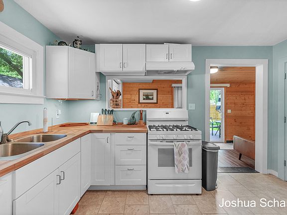 Be sure to check out this amazing 2 bedroom, 1 bathroom home that been completely redone from top to bottom! As you walk inside, you'll be greeted by a spacious living and dining area. As you move into the kitchen you'll notice butcher block counter tops, updated cupboards, and newer appliances. This home features two large bedrooms with plenty of closet space, and a newly remodeled bathroom as well. Toward the back of the home there is an additional eating/bar area, a reading nook, and a main floor laundry room. Once outside you'll notice the large deck, spacious backyard, and wrap around privacy fence. This home also features a full basement, a large detached garage, and plenty of parking space. Be sure to see this move-in ready home today!