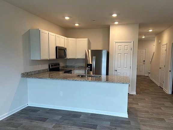 As you step inside, you'll be greeted by an inviting open-concept layout, featuring a high ceiling, LED lighting, and a Beautiful kitchen with a large granite island. The Luxury Vinyl Plank floors and the well-appointed kitchen are a chef's dream, boasting features such as stainless steel appliances, granite countertops, and ample cabinet space. Whether you're entertaining guests or preparing a gourmet meal, this kitchen is sure to impress. Enjoy the serene outdoors.