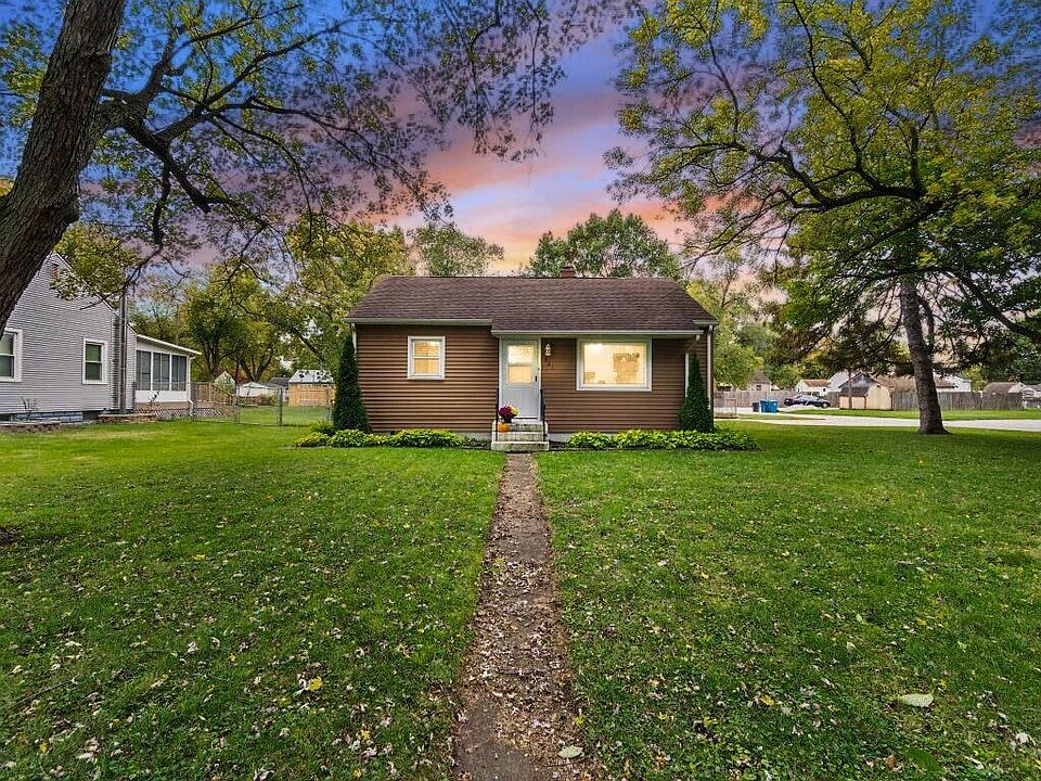 Welcome to this beautifully updated 2-bedroom (possible 3), 1-bath ranch home located in the heart of Crown Point, Indiana, one of Northwest Indiana's fastest-growing and most desirable communities in the Region. Nestled on a corner lot in Liberty Park Subdivision, this home offers convenience, comfort, and charm--just minutes from the vibrant Downtown Crown Point Square. Step inside to a cozy living room featuring two large picture windows, abundant natural light, ceiling fan, and waterproof vinyl flooring. The bright eat-in kitchen includes ample oak cabinetry, generous counter space, and all appliances, range/hood, refrigerator, dishwasher, and microwave, pantry, with a window above the sink. The spacious primary bedroom easily accommodates a king-size bed, while the second bedroom is also roomy, both includes a ceiling fan. The oversized, updated bathroom offers plenty of room to relax and unwind. A large bonus room provides flexible use as a third bedroom, recreation area, sunroom, or related living. Complete with French doors (with built-in blinds) opening to a wooden deck perfect for morning coffee, evening relaxation, or outdoor entertaining. Enjoy a fully fenced backyard with a fire pit, shed for extra storage, and ample space for gatherings. Back door leading to a wooden porch. The finished, heated attached 1.5-car garage includes a workbench, cabinetry, refrigerator, opener, and concrete side driveway with an extra parking pad. Recent updates include: Hot water heater (2020) Furnace (2021) Vinyl windows, Flooring, Gutters and downspouts. Located within the highly rated Crown Point School District, this home offers low taxes and an unbeatable location, walking distance to bike path, parks, shopping, dining, banks, and schools, with easy access to major highways for commuters. NO HOA. Start living comfortably in one of Lake County's most sought-after areas Crown Point, Indiana!