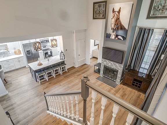 Freshly painted cabinetryLarge windowsStunning quartz countertopsStriking open stairwayAbundant storageChic chandelierStriking custom vanity