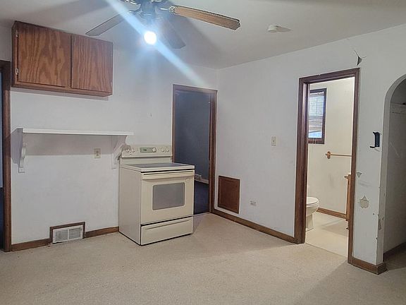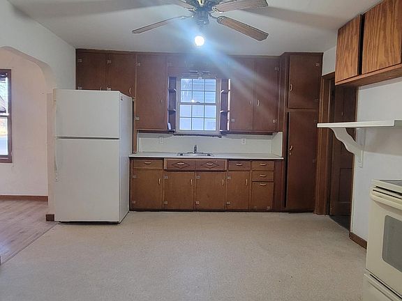 Home is currently a rental. Previous owner used it as a duplex. Main floor has a nice living room, large kitchen, 2 bedrooms and a full bathroom. The basement is full and unfinished and ready for ideas! Upstairs includes a second kitchen, 2 additional bedrooms, and another full bathroom. The attached 2 car garage is great for projects and parking. The backyard is very large, and has enough room for another garage if desired! Across the street from the Lions Park, with room to run around for the kids or pets and includes a playground. Great home for a handy person or for a home with some roommates to help pay your mortgage! Plenty of opportunities here!