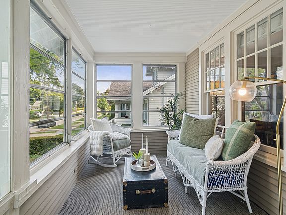 Welcome to 221 Coolidge, a charming and historic Sears Craftsman home nestled in the heart of the village of Barrington's Historic District. This beautifully maintained residence harmoniously blends the cozy charm of yesteryear with the modern conveniences essential for today's lifestyle. As you approach this delightful home, you'll be welcomed by an inviting sunroom where you can relax and watch the quiet street activity. Step inside to discover a warm and welcoming interior featuring hardwood floors and a seamless flow throughout the first floor. This level boasts a cozy living room, a formal dining room, and a custom kitchen with stainless steel appliances. Also on the first floor is a versatile bedroom that can double as a home office, along with a full bath. Venture upstairs to find two enchanting bedrooms and a spacious, updated bathroom. The full basement presents a third full bath and ample storage space, offering plenty of room for all your needs. The home is situated just two blocks from Hough Elementary School, ensuring a safe and easy walk for children without crossing busy streets, and only a little over half a mile from Barrington High School. Located just three blocks from the vibrant town center, you'll enjoy easy access to parades, festivals, art fairs, live music, and a variety of dining options. The extra-deep backyard is fully fenced, providing a private oasis for relaxation or play. With newer siding and solar panels that have significantly reduced the electric bill, this home is as energy-efficient as it is charming. Experience the delightful blend of history and modern comfort at 221 Coolidge - a true darling in Barrington.