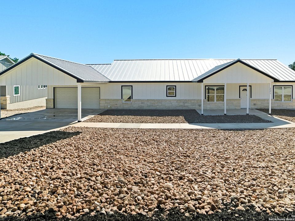Welcome to the Texas Hill Country! This brand-new 3 bed, 2 bath home offers 2,457 sq ft of thoughtfully designed living space on a spacious 0.82-acre lot. Enjoy an open floor plan with a wood-burning fireplace, beautiful quartz countertops, and a large kitchen ideal for entertaining. The home features spacious bedrooms, walk-in tile showers, standalone tubs, and built-in cabinetry in the laundry room. Step out back to a peaceful setting with mature oak trees and scenic views. A perfect blend of modern comfort and Hill Country charm - don't miss this one!