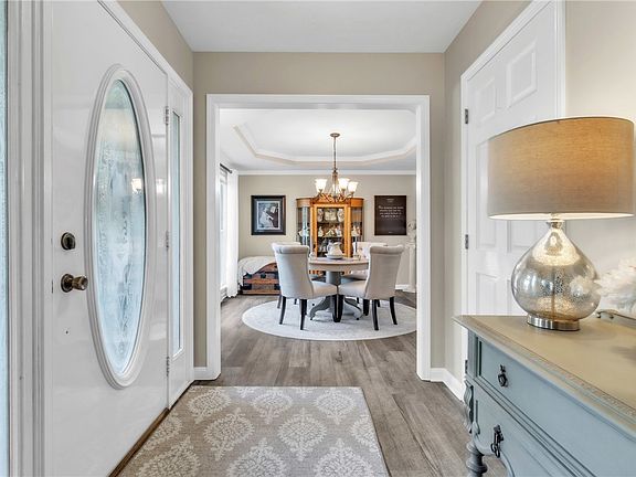 Experience refined living in this custom-built all-brick Clark Harvey home, perfectly positioned on a corner lot in Meridian’s well known Deer Run plan. This 4BR, 2.5BA two-story offers an open, light-filled layout. The spacious living room centers around a striking gas fireplace—an inviting focal point for gatherings. The formal dining room features tray ceilings and a wall of windows, while the well-appointed kitchen—with stainless appliances, a breakfast bar, stylish backsplash, breakfast nook and ample cabinetry—will inspire the home cook in you. A 3-season room with beamed ceiling overlooks the fenced-in inground pool with concrete surround—your own private retreat. Additional features include main-floor laundry, newer roof, concrete driveway, professionally landscaped, and an expansive basement ready for your vision. Elegant, functional, and move-in ready.