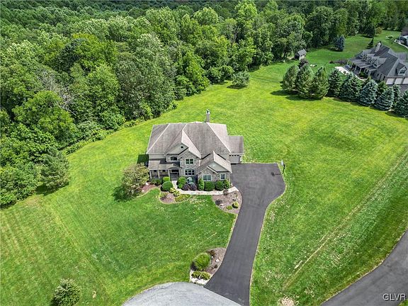 One Of A Kind Within Nazareth SD! Nature abounds in this stylish 5 bedroom, 4.5 bath custom built home, cul-de-sac living, Jacobsburg St Park out your back door, approx. 1,200 acres of hiking and biking trails! Ultimate privacy, premier 1.61 acre lot, a rural retreat that’s an absolute pleasure to come home to. Plenty of natural light with 9 ft ceilings. The custom kitchen offers granite, cherry wood cabinets with glass doors and has views of all rooms including the secluded yard. The two story family room offers a custom full height wall of windows overlooking the gorgeous picturesque yard. First floor bedroom with en suite bathroom and a first floor office with stunning french doors. The master bedroom suite is an intimate retreat featuring a tray ceiling, stunning custom bathroom with gorgeous custom tile work and glass, beautiful sinks and countertops, massive walk-in closet! Another large second floor bedroom with en suite bathroom and walk in closet is very nice. The jack and jill full bathroom is shared between 2 bedrooms. There is also potential for an additional 2000 sq. feet of living space in the full walkout basement with 8 ft. ceilings, offering 7 full size windows and French doors leading to a private patio. This Custom built home has had one owner, sports a full stone exterior, upgraded 2x6 walls for superior energy efficiency, 3+ car oversized garage, new HVAC offering highly desirable 5 zone ac / heat and upgraded windows that include screens and grills!