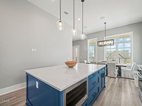 STRIKING 1ST TIER COASTAL RETREAT! Perfectly positioned in the heart of the gated Sugar Sands community, this new 5-bedroom, 5.5-bath home delivers resort-style amenities, sweeping Gulf views & thoughtfully designed spaces ideal for family gatherings or exceptional rental income potential. The ground level welcomes you with a covered entrance, inviting foyer, dual garages perfect for vehicles or golf carts, outdoor shower, half bath & elevator access to all levels. The heart of the home awaits on the second floor with an open-concept living area featuring expansive seating, built-in storage, & broad decks that extend your living space outdoors. Panoramic views of the coastline set the backdrop for entertaining, while the chef's kitchen boasts top-of-the-line stainless appliances, a 4-burner gas range with griddle, oversized island with seating, butler's pantry, & coffee bar. A full dining area & breakfast bar offer plenty of room for casual meals or elegant dinners. The layout is designed for privacy & flexibility. On the first floor, two luxurious king suites feature private deck access & spa-style baths with double vanities & zero-entry showers. Two additional queen bedrooms with private balconies & a shared bath provide comfortable accommodations for guests. The bunk room keeps family close by while giving kids their own retreat. The loft lounge on the top floor is the ultimate sunset perch, overlooking miles of uncrowded beaches protected by nearby Tyndall AFB—ensuring endless privacy & unspoiled Gulf views. The spacious yard includes irrigation, gravel patio, & room to add a pool, making outdoor entertaining easy. Community amenities feature a resort-style pool, fitness center, clubhouse, & private golf cart beach access just steps away. Offered fully furnished & turnkey, this home is ready for immediate enjoyment or strong rental performance. Call today for your private tour & LIVE THE BEACH LIFE!