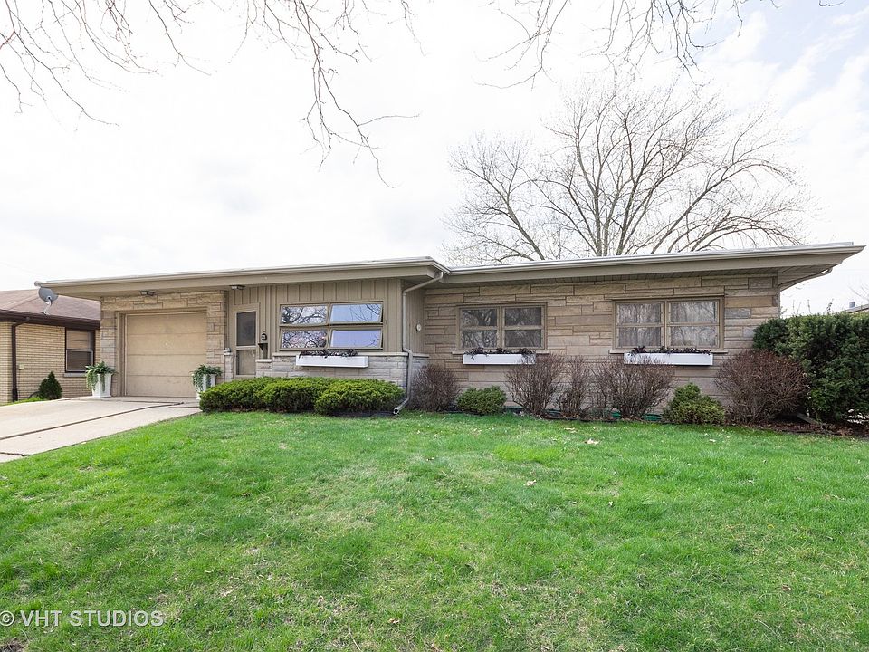 Beautiful Bedford stone ranch ! Fantastic great room with lovely wood floor! Stunning eat in kitchen, remodeled main floor bath, Three season room can be used year round with the gas fireplace. Finished family room in basement has huge entertaining area. Electric FP , full bath and bar area top it off! Yard has a patio and is newly fenced. This home is in top move in condition!