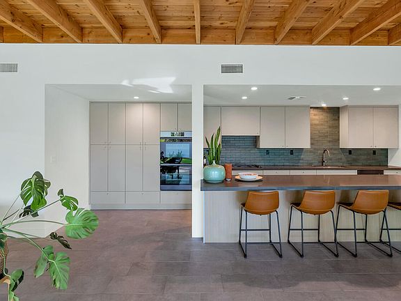 This brand new mid-century modern ranch is truly something special. Built with impeccable style and exceptional attention to detail, not a detail was overlooked in this modern showpiece. The open floor plan is super livable, and each room features unique quality design elements. The custom kitchen is absolutely gorgeous with composite Caesarstone counters, beautiful tile backsplash, a huge island, graphite Dacor appliances, double ovens, gas cooktop and plenty of space to prep, serve and entertain. The great room is spectacular with a remarkable floor to ceiling exposed brick fireplace, and there are two amazing primary suites that both have great looking baths, offices with built-in cabinetry and large walk-in closets. (See More)