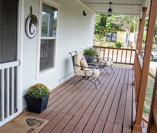 Completely updated interiorTwo master suitesCustom built-in bookshelvesCorner lotLarge corner lotHuge covered front porchWarm open layout