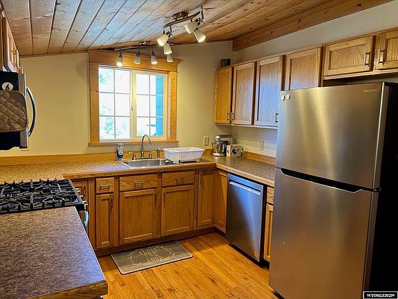 Amazing home with attention to detail. Located on a corner lot with large back yard, patio for entertaining and barbequing, new fence in 2022, and a great storage shed. Beautiful hard wood oak floors, tongue and groove ceilings, new kitchen with new cabinets and countertops, stainless appliances with a gas range oven. Large master bedroom. Laundry room is spacious with storage, washer & dryer included. Central Air is an additional feature, upgraded windows, new light fixtures, and both bathrooms have been remodeled. You have to see this home! Call Patty Armenta 307-320-5979 for a showing.