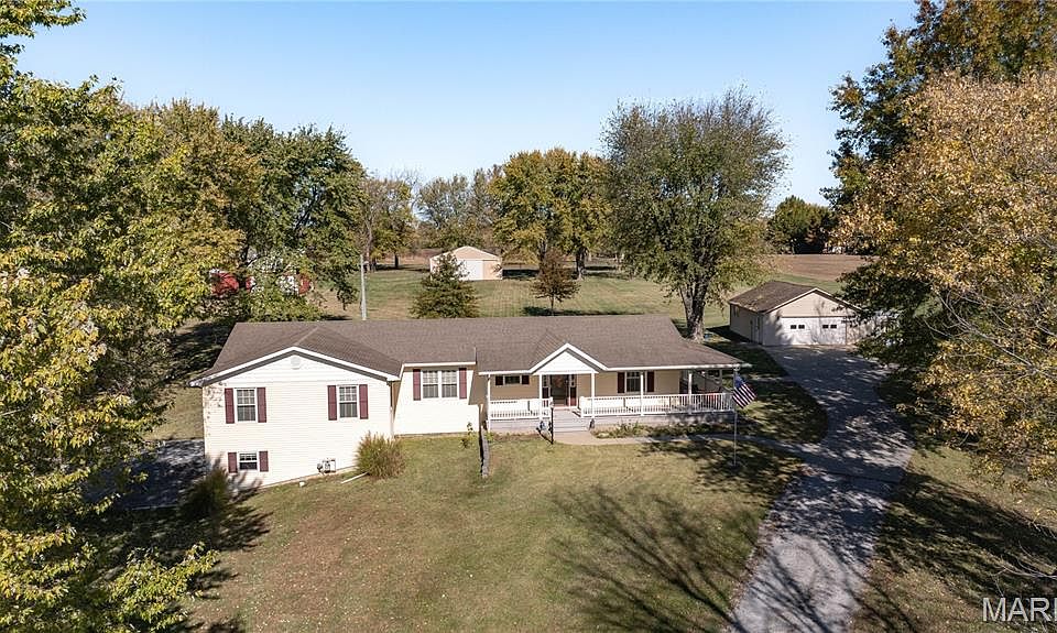 Discover country living with modern convenience on this beautifully maintained 5-acre property in the Bethalto School District! Enjoy over 2,100 square feet of main-floor living space featuring three bedrooms and two full baths. The over 1200 square foot spacious lower level offers a full kitchen, living room, bath, utility room, office, and bonus room—all with walk-out access to the tucked-under two-car garage with a separate entrance, making it ideal for a guest or in-law suite.