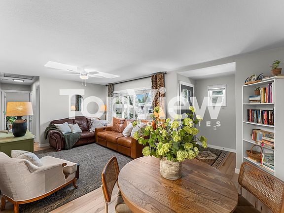 Built in 1956, this 1,363-square-foot ranch-style home offers an open, bright layout and single-level living. Enjoy luxury vinyl plank flooring throughout the living room, kitchen, and dining area, plus updated carpet in all three bedrooms. The tastefully renovated kitchen features stainless steel appliances, white subway tile backsplash, upgraded cabinetry and hardware, a stainless steel sink, and a skylight. The living room is filled with natural light thanks to large windows and a second skylight, creating a warm and inviting space.