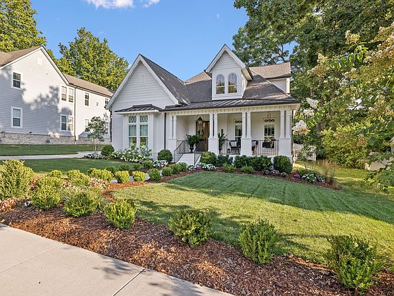 Just minutes from the charm of historic downtown Franklin, this storybook home offers the ideal blend of character, comfort, and elevated design. Ideally located in the heart of Franklin, you'll enjoy easy access to boutique shops, local restaurants, coffee houses, and beloved community events—all just a short stroll or drive away. Nestled on a picturesque lot with a covered front porch, porch swing, and beautiful landscaping, it’s as welcoming outside as it is inside. Step through the front door and you’re greeted by a bright, open layout with vaulted ceilings in the living room and kitchen, creating an airy, grand feel. The chef’s kitchen is a true centerpiece—featuring a large center island, top-of-the-line stainless steel appliances, ceiling-height cabinetry, and a charming prep pantry with a Dutch door. Unique transom windows add custom flair and character throughout. The main level features two spacious bedrooms with en-suite baths, including a luxurious primary suite with a vaulted ceiling, clawfoot soaking tub, floor-to-ceiling tiled shower, double vanities, and an expansive walk-in closet with direct access to the laundry room for everyday convenience. Work from home in style in the main-level office, adorned with classic wainscoting, a cozy fireplace, and built-in shelving. Upstairs, you’ll find two additional bedrooms, each with its own full bath, plus plenty of storage and flexibility. Enjoy year-round outdoor living on the covered back porch, complete with an outdoor fireplace, all overlooking a fully fenced backyard ideal for entertaining or relaxing. And the cherry on top? A private studio apartment over the garage with its own kitchenette and full bath—perfect for guests, in-laws, additional home office, or entertaining space. Located in Williamson County and zoned for award-winning schools, this home offers timeless style, thoughtful design, and an unbeatable location.
