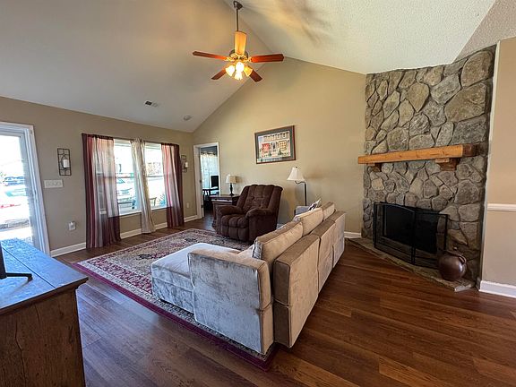 - Ceiling Fan(s), Cathedral Ceiling(s), Attic Stairs Pulldown, Fireplace, Ceiling - Smooth, Laminate Counters, Open Floorplan, Split Bedroom Plan