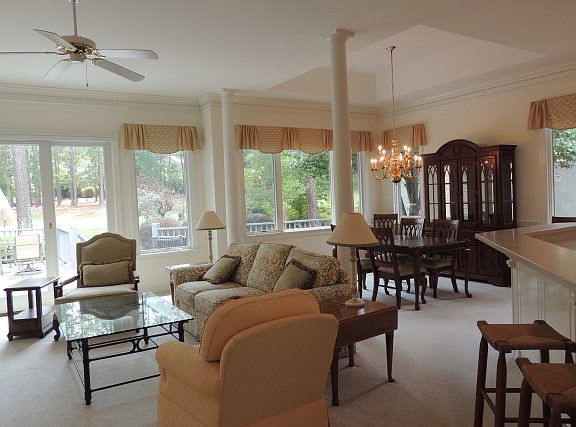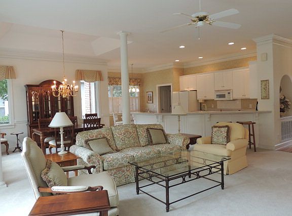 Enjoy special lifestyle on the 18th tee of a picturesque fairway. Very open sunny beautifully designed home. 3 BR's,bonus/4th BR, 3 1/2 Baths, large MBR, single level living at its' best! Priced to sell.