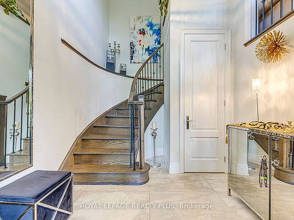 Discover refined luxury at the Royal Oakville Club, where elegance and modern comfort define an exceptional lifestyle. Set on a premium, park-facing lot, this residence offers upscale living with the ease of no-maintenance grounds. Ideally located in West Oakville, you are steps from Lake Ontario and historic downtown, surrounded by boutique shops, fine dining, and the pictures que waterfront. The prestigious Lyndhurst model by Fernbrook, offering approximately 3,236 sq. ft., showcases exceptional craftsmanship. This 4-bedroom, 3+2(1/2)-bath home features soaring 10 and 9'ceilings, eight-foot solid-core doors on all levels, hand-scraped hardwood floors, custom cabinetry, designer tiles, pot lighting, and elevated fixtures. An elevator serves every level-from the lower floor to the expansive rooftop terrace-ensuring seamless convenience. The elegant formal living room is ideal for sophisticated entertaining, while the gourmet kitchen boasts quartz waterfall counters, custom cabinetry, an extended centre island, Wolf and Sub-Zero appliances, and a bright breakfast area opening to an east-facing balcony that welcomes beautiful morning sun. The upper level offers three spacious bedrooms, a full laundry room, and two spa-inspired bathrooms. The primary suite features a private balcony and a luxurious ensuite with a freestanding tub and glass-enclosed shower. The ground level provides a versatile media room, a4-piece bathroom, a well-designed mudroom, and direct access to the double garage. A fully finished basement with a 2-piece washroom adds exceptional flexibility-perfect as an additional living area, guest room, entertainment zone, or workout space. The expansive rooftop terrace offers outstanding outdoor living with all-day sun, ideal for relaxing or entertaining. With superior construction, thoughtful upgrades, and an unbeatable Oakville address, this exceptional Fernbrook townhome delivers an elevated lifestyle in one of the city's most coveted communities.