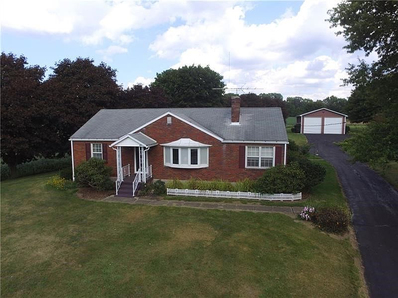 Lovely all brick ranch situated on 3.75 acres in Center Twp. Newer eat-in kitchen offers tons of cabinetry and Corian countertops. Formal dining room is open to kitchen, large living room with log-burning fireplace, newer bath and 3 bedrooms with ample closets and hardwood under carpet. Expansive finished lower level is perfect for a family room and has a log-burning fireplace and tons of storage. Enclosed porch on first floor has laundry hook-ups as well as basement. One stall detached garage with workshop and 30x40 garage with 12ft. doors and electric. Corner lot with gazebo and circular drive. Furnace 2015, A/C 2018, Hot Water Tank 2018. Convenient location close to Rt. 8, Rt. 422 and Rt. 38.