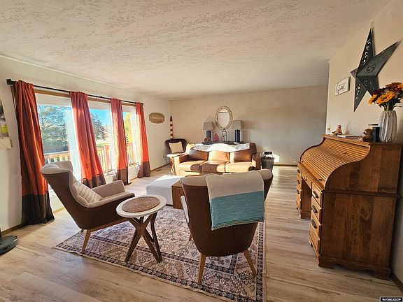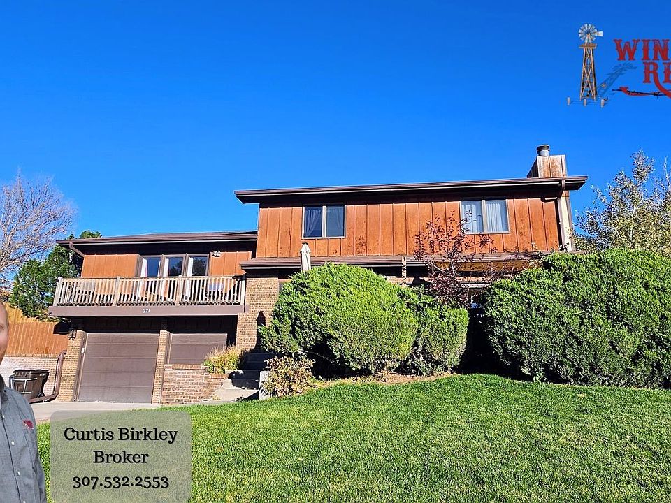 Welcome to 221 Hillcrest Drive in Torrington, WY! This spacious 4-bedroom, 3-bath split-level home offers 2,738 sq. ft. of comfortable living on a generous 10,450 sq. ft. corner lot. The upper level features an open-concept living, kitchen, and dining area—perfect for gatherings—along with a large primary bedroom suite complete with a private dressing/makeup area and .75 bath. Enjoy beautiful sunset views from the front patio, or relax in the private backyard featuring a hot tub, mature landscaping, and an underground sprinkler system. The lower level offers a large family room with a cozy fireplace and bar closet—ideal for entertaining. Additional highlights include updated flooring, digital activated exterior eve lighting, and two remodeled bathrooms. The attached two-stall garage provides convenient access and ample storage. A truly inviting property with thoughtful updates throughout!