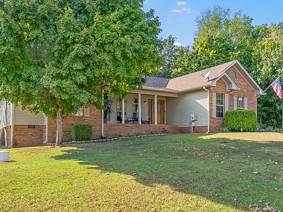 Spacious 4-bedroom, 2-bath home situated on 2 lots with a desirable split floor plan! The kitchen offers plenty of counter seating and opens to the vaulted-ceiling living room. Enjoy outdoor living with a 16x10 covered deck accessible from both the living room and primary bedroom, plus a firepit area perfect for entertaining. The garage is set up for fun with a pool table, bar area, TV, and refrigerator that all remain, and there’s also a detached shed for extra storage.