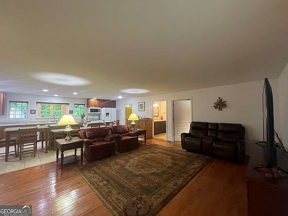 This home is priced to sell! This beautiful inviting home is a must see! 2/2, constructed in1999 and approx. 3,115 sq. +/- ft. on 3.07+/- acres of gentle sloping landscaped land in a private location, yet within minutes to any convenience you might need! This home has a wrap around porch with a deck for relaxing. The property Includes a large, detached (2) car garage with oak cabinetry for extra storage. A beautiful, large primary bedroom with attached sunroom to view the outdoor scenery & completely renovated primary bathroom with corner tub & walk-in shower. All appliances are included with (2) dishwashers! Beautiful oak kitchen cabinets & large kitchen pantry. Large free-standing freezer in laundry room and an abundance of oak cabinetry. The Huge upstairs area boasts beautiful wood flooring & several closets. An expansive upstairs room provides endless versatility-ideal for hosting guests, setting up a home gym, or creating a personal sanctuary. Livingroom is large & inviting very cozy. A convenient bedroom/office & bathroom are just off the living room. This home is move-in-ready! Furnishings are negotiable which can save on the high costs of moving.