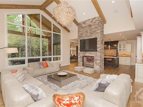 Modern Elegance and rustic warmth defines this Award Winning Custom home on prestigious Ironstone Court . Private treed 2.25 acre lot, exceptional landscaping designed to create a retreat in both the front and back of this stunning home. Some notable features: Vaulted beamed ceiling, Living Room with stone double sided fireplace, dining room, culinary kitchen with huge pantry, breakfast island, Muskoka room with wood burning stone fireplace, master with luxury ensuite and dressing area/walk-in, 5 bedrooms all with ensuite baths, Large covered deck accessed from kitchen, main floor laundry, mud room, gym, home theatre room (currently a music room)rec. room with walk out to covered deck, oversized 4+ garage. This flawlessly designed home offers over 6,000 sq. feet of living space including a self contained in-law-suite with walk-out lower level. Sophistication, uncompromising quality and timeless luxury awaits you on this quiet cul-de-sac. 24 hour irrevocable on all Offers