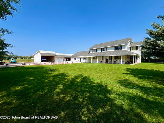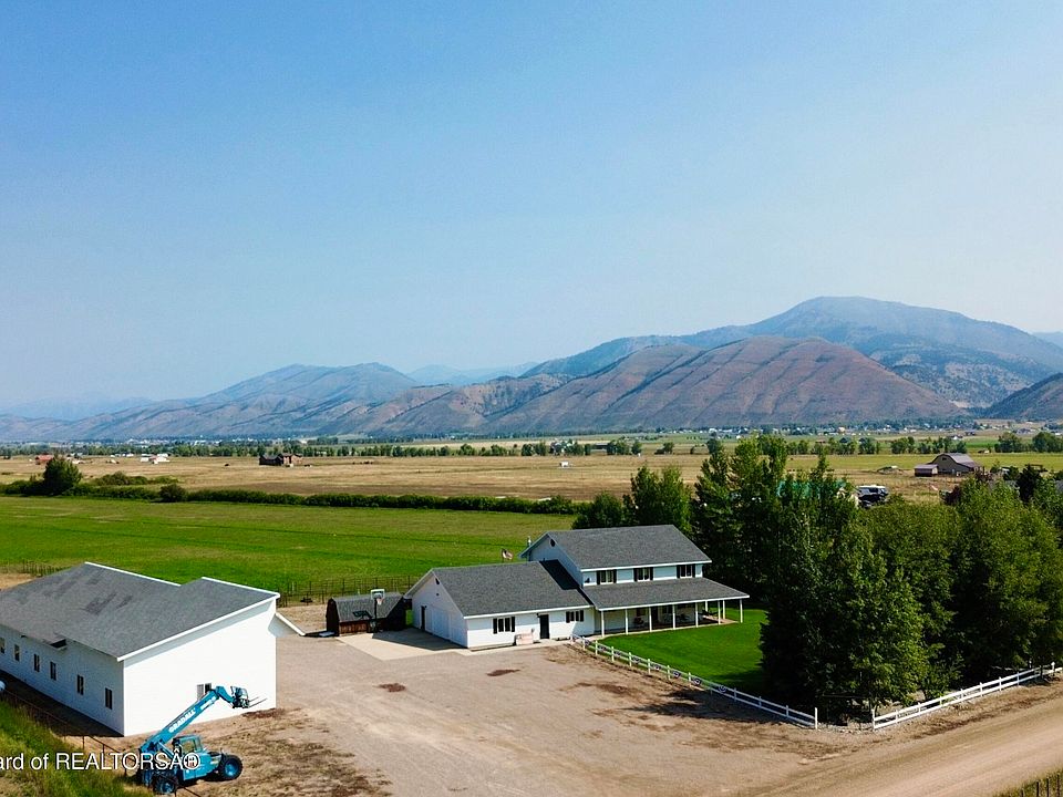 This stunning property offers the perfect blend of privacy, space, and breathtaking views. This beautiful home is situated on 13.13 acres, with live water flowing across the east side. With a large kitchen, 4 bedrooms, an office, and 2 family rooms, this spacious home provides ample room for comfortable living and entertaining. Enjoy outdoor gatherings with the beautifully landscaped yard, covered front and back porches, and fire pit area. Hot tub included! The attached oversized 2-car garage, large closets throughout, 200sqft bully barn, and loafing shed provide plenty of space for your four-legged friends plus all your toys. The huge 110' x 32' storage building has a heated 2-bay shop as well as 6 open storage bays. With no HOA or CCRs you can have the freedom to do as you please. Perfect for horses, hobby farms, or simply enjoying nature! Irrigation shares are through Fairview Irrigation District. Don't miss your chance to make this amazing property your own!