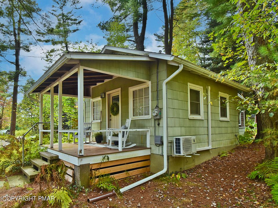CUTE AS A BUTTON & FULL OF CHARM, this Pocono Pines cottage is the ULTIMATE little getaway! RECENTLY UPDATED & SOLD TURNKEY, this cozy studio-style home offers everything you need for a relaxing escape! A BRIGHT living/sleeping combo area w/ original hardwood floors, an Eat-in Kitchen to whip up your favorite meals, & a full bath. Kick back on the welcoming front porch w/ a hot cup of coffee in the crisp mountain air or enjoy evenings under the stars. Located right in the heart of Pocono Pines, you'll be just mins from popular attractions, hiking trails, & lake activities, making this a DREAM SPOT for a short-term rental or your own personal retreat. Enter right into the fall season & start making memories in this special Poconos hideaway!