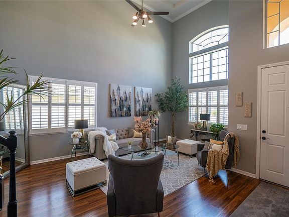Step inside this home from anywhere! To experience a fully immersive walk-through of this home click on the Video or Virtual Tour button on this page. Experience elevated Florida living in this executive two-story contemporary residence, showcasing 5 bedrooms, 3.5 baths, and over 3,000 square feet of impeccably designed living space within the exclusive gated community of Lake Julianna Estates. Perfectly situated between Lake Juliana and Lake Tennessee, with private canal access to Lake Mattie, this home exudes elegance, sophistication, and a true move-in-ready appeal — it feels like stepping into a brand-new model home. Upon entry, you’re greeted by soaring ceilings, abundant natural light, and a spacious open-concept floor plan that seamlessly blends style and comfort. The formal living and dining areas at the front of the home create a warm welcome feel, currently showcased as a chic parlor. At the heart of the home, the gourmet kitchen inspires culinary creativity with rich cherry cabinetry, granite countertops, stainless steel appliances, a large center island, and a sunlit breakfast nook overlooking the living area. The adjoining family room, with its high ceilings and walls of windows, provides the perfect setting for entertaining or quiet family evenings. The luxurious primary suite, conveniently located on the first floor, is a serene retreat featuring tray ceilings, plantation shutters, wood flooring, and a charming bay window sitting area. The spa-inspired primary bath offers dual vanities, a soaking tub, a glass-enclosed walk-in shower, and a custom closet system with built-in cabinetry. Upstairs, a spacious loft area connects four generous secondary bedrooms, each with ceiling fans and built-in closets, complemented by a Jack-and-Jill bath and an additional full bath with elegant finishes. Step outside through the sliding glass doors to your screened-in patio, perfect for al fresco dining or relaxing evenings overlooking the expansive backyard. Lake Julianna Estates offers resort-style amenities, including private lake access, a community clubhouse, tennis and basketball courts, a sparkling swimming pool, children’s playground, and a private boat ramp and dock with direct access to Lake Juliana — ideal for boating and fishing enthusiasts. This pristine home combines luxury, comfort, and location in one of Central Florida’s most desirable gated lakefront communities.