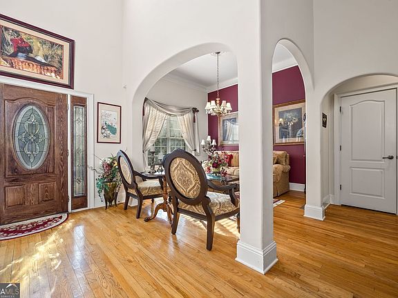 Welcome to 221 Langshire Drive in the prestigious South Gate at Eagles Landing, a gated community with 12-hour on-site security. This elegant 7-bedroom, 5-bath, 4-sided brick home offers an inviting open-concept layout with hardwood floors, a spacious family room with a high ceiling, gas fireplace, and a kitchen featuring a large center island and breakfast nook. The primary suite on the main includes a walk-in closet plus an extra storage room. Upstairs provides generous secondary bedrooms ideal for family, guests, or office needs. The fully finished basement (terrace level) with a private entrance is perfect for true multi-generational living. This level includes a full kitchen, dining/living area, two bedrooms, two full baths, and its own washer and dryer-an exceptional independent living space for in-laws, extended family, or long-term guests. Outdoor living features a main-level back deck overlooking a wrought iron fenced backyard with a custom cement pathway. Community amenities include a pool, play area, and optional membership to the Eagles Landing Country Club. A rare blend of space, security, and flexibility in one of the area's most desirable gated neighborhoods.
