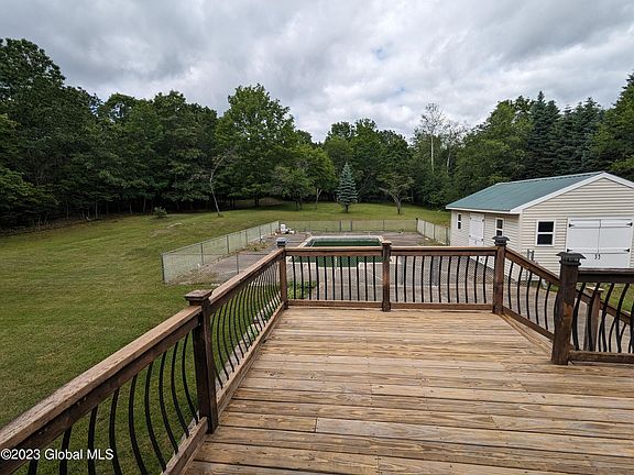 Beautiful 3 Bedroom Home on 5.7 Acres - Custom Built in 1981 - Roof is 1 Year Old - 23x17 Living Room w/ New Carpet and Pellet Stove - Large Kitchen and Dining Room Combination - Master Bedroom w/ Walk-In Closet - Pella Windows - Sizeable Front Porch Patio Leading to Front Entryway - Oversized 2 Car Garage and Circular Driveway - Full Unfinished Basement w/ Wood Stove - In Ground Pool w/ Fence - Spacious Concrete Patio Adjoining Pool Area - 20x30 Shed w/ Large Doors on Side and End - Pressure Treated Wood Deck w/ Sliding Glass Door to Dining Area - Gutters - Spectrum Available at the Road - Estimated Taxes 8,806 Annual - Schodack Schools - Close to I-90, Appx 10 Miles from Albany -238 x 1137 x 939 x 305 Lot in Private Setting