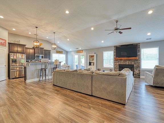 - Ceiling Fan(s), Fireplace, Solid Surface Counters, Open Floorplan, Split Bedroom Plan, Pantry