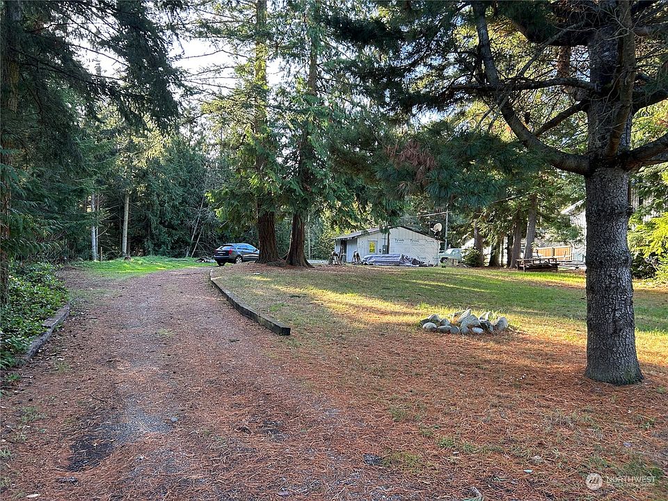 Bring your vision or your RV & explore the possibilities! Lovely half acre with community water & electricity in beautiful Diamond Point. It's a mostly level lot partially wrapped in trees that offer privacy. There's a driveway, cement pads & a (non permitted) garage that was being transformed. It's a definite fixer, but, with a 3 year old roof, water, toilet, electricity & a free standing stove inside. Buyer needs to verify functionality of all utilities. You have Beach rights & access to the community boat ramp. You can hike the abundant & serene trails of Miller Park. A private airstrip for easy visiting or commuting. Sequim is a short drive to enjoy restaurants, shopping, entertainment & the amenities this charming area offers.