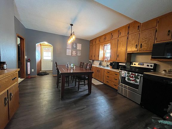 This four bedroom, one bath residence offers comfortable living spaces with abundant potential. The main level boasts one bedroom, bath, laundry, kitchen, and a living room which showcases a beautiful natural wood staircase. Upper level features three nice sized bedrooms. Outside, enjoy a large concrete patio, perfect for gatherings and grilling. The expansive heated and insulated three-car detached garage provides incredible storage, workshop space, or parking versatility. A generous yard surrounds the property, offering endless possibilities for gardening and play. With historic character, abundant outdoor space, and room to make it your own, this property is full of opportunity. Don’t miss your chance to make it yours.