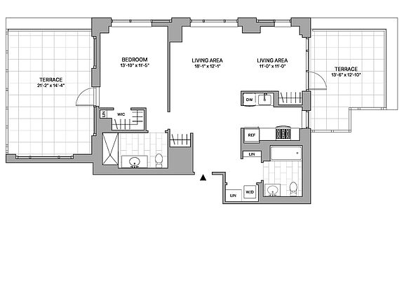 Stunning 1 Bed, 2 Bath Home Featuring a Thoughtfully Designed Layout Including a Versatile Windowed Alcove, Beautiful Windowed Kitchen, Spacious Living Area, Walk-in Closet, King-size Bedroom with En-Suite Bath. Walk-in Shower, In-Home Laundry, Northeastern Exposure ,and Two Private Terraces. Gross Rent $7835.