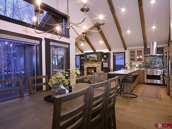 Boasting 220+- feet of Coal Creek Frontage in the heart of Downtown Crested Butte, this remarkable residence stands out as a true gem and a rare find. Meticulously and thoughtfully designed this home blends modern elegance with a cozy mountain aesthetic that welcomes you from the moment you step inside. By foot you can enter the home from the Coal Creek side or the main entrance is off the alley where an oversized one-car garage provides secure storage for your vehicle or gear, complemented by a spacious shed for additional storage needs. Enter the main entrance into a generous mudroom featuring custom built-in storage and a cozy bench—an ideal spot to shed your outdoor gear after a day of exploration. Ascend the staircase adorned with expansive picture windows, leading you to the main living area. Here, breathtaking views of Coal Creek, Aspen trees, and Lush flower gardens unfold before you, illuminated by an abundance of natural light. The larger windows, a rarity under current design regulations, truly enhance the home’s open feel. The kitchen is a culinary delight, boasting custom soft-close cabinetry, exquisite Quartzite countertops, a six-burner gas range, and a striking deep green, handmade terra cotta tile backsplash that adds a unique touch. The living room exudes warmth with a gas fireplace framed by custom built-in cabinetry and a handsome wood mantle. The cozy window seat is the perfect nook for unwinding with a book while listening to the gentle flow of the creek and observing the lively Crested Butte scene and will most likely be your dogs favorite spot. Gather for meals in the spacious dining area or step outside to the expansive balcony to enjoy al fresco dining. The master suite offers spectacular northern mountain vistas, complemented by two closets and built-in drawers nestled below a large window seat. The en-suite bathroom is a serene retreat, featuring a stand-up steam shower, quartzite counters, and a custom vanity adorned with brass fixtures. Venture downstairs to discover a beautifully appointed family room, where a wall of windows frames views of the creek and the enchanting Aspen grove. A gas fireplace keeps the space warm and inviting during chilly nights. The junior master suite lulls you to sleep with the soothing sounds of the creek just outside the window, while its en-suite bathroom showcases fresh grey subway tile in the shower, chic concrete tile flooring, and stylish brushed brass fixtures. The second bedroom is well-equipped with ample closet space, and the third bathroom is a showstopper with its trendy black and white tilework and generous vanity, making it an excellent guest bath. Unique to this property is the inclusion of central air conditioning and gas forced air heating, ensuring comfort year-round. Home was remodeled in 2019. The main living areas feature elegant oak hardwood flooring, plush new carpeting in the bedrooms, and Ashley Norton hardware throughout, along with countless other exquisite details. Step out the south door, through the gate, and you’re mere moments from Elk Avenue, where dining and entertainment await. This home encapsulates everything you could desire in a Downtown Crested Butte residence. This is a great investment that will be a legacy home for your family in downtown Crested Butte. The Land size is larger than assessor has owners purchases 800+- from the town on the Creek recently. 10/10 Rental reviews available upon request and ask agent for further details on the home.