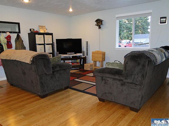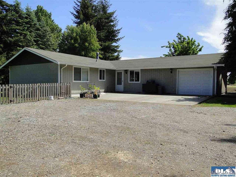 Quiet oasis close to town! Fully fenced yard w/ Doug Fir trees surrounding the acre+, end of road w/ Olympic mtn views, fruit trees: cherry, apple, plum, pear, & peach, vegetables & fruit garden plus raised beds, greenhouse attached to shed, & manual sprinkler system using rights to water irrigation ditch running length of the East side of property. Interior also recently remodeled w/ open living space, concrete countertops in good-for-entertainment kitchen & master bath as well as jetted tub in master.