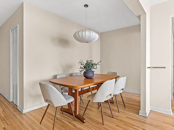 Inside, you'll find gleaming hardwood floors and abundant natural light streaming through multiple exposures. A gracious entry foyer with a coat closet opens to a sprawling living and dining area-perfect for hosting or relaxing in quiet comfort.