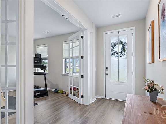 $5,000 BUYER INCENTIVE AT CLOSING! USE TOWARDS CLOSING COSTS, RATE BUY DOWN, OR PRICE REDUCTION! Situated on the premier lot in Westwood Reserve, this stunning 2022-built home offers serene water views and breathtaking sunsets over the treetops. This private, oversized lot backs to green space and overlooks a neighborhood pond - a fisherman’s dream - with a fully fenced backyard, custom patio for grilling, added walkways, and a screened porch with a brand-new hot tub! Inside, you’ll find 4 bedrooms, 3 full baths, and loads of flex space. The welcoming foyer features French doors opening to a private office or formal living/dining space with a custom barn door. The open-concept living area is bright and inviting, with a family room that flows into a gourmet kitchen and dining area. The kitchen boasts a large island with seating, granite countertops, stainless steel appliances, abundant storage, and a huge walk-in pantry with room for future built-ins or a coffee bar. Upstairs, the owner’s suite is a true retreat with a sitting area—ideal for a nursery or workout space—a massive walk-in closet, double vanity, soaking tub, and walk-in shower. Views galore from the super spacious upstairs den/family room! Step onto the private upstairs screened porch to enjoy tranquil views of the lagoon and surrounding landscape. Additional highlights include a downstairs guest room, upstairs laundry, and thoughtful upgrades throughout. All this within minutes of top-rated schools, shopping, and everything Pooler has to offer!