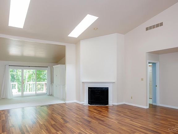 One-level layout overlooking the Little Miami River! Open floor plan featuring vaulted ceiling with skylights and wood burning fireplace, primary bedroom suite features walk-in closet, eat-in kitchen with desk and pantry, laundry/utility room, porch was enclosed to add family room space, pull-down stairs in attached garage lead to large, vaulted, useable attic storage, plus private deck with unbeatable wooded views directly over the river! Enjoy the relaxing sound of the rapids below echoing up through the trees! Fantastic Miami Woods location- enjoy easy living on the river!