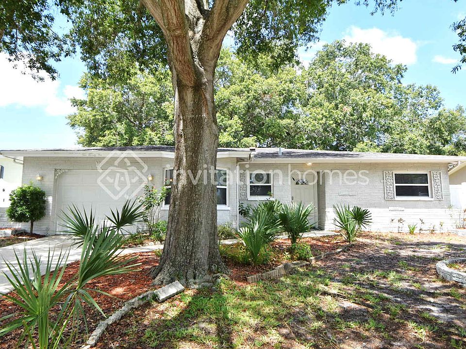 Home Features and Amenities: Air Conditioning, Bay Windows, Breakfast Nook, Fenced Yard, Garage, Long Lease Terms, Luxury Vinyl Plank, Pet Friendly, Primary Bedroom on Main, Single Story House, Smart Home, Stainless Steel Appliances, Tile, W/D Hookups, and professionally managed by Invitation Homes.