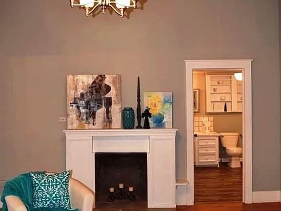 - One Living Area, Liv/Din Combo, Study/Library, High Ceilings, Ceiling Fan(s), Chandelier